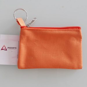 BRINDES| PORTA MOEDAS LARANJA, COM PORTA CHAVES 11X8CM