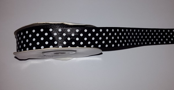 FITAS DECORATIVAS|CETIM PRETO COM BOLAS BRANCAS