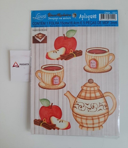 LITOARTE| DECOUPAGE COM MADEIRA APLIQUES 5PÇS