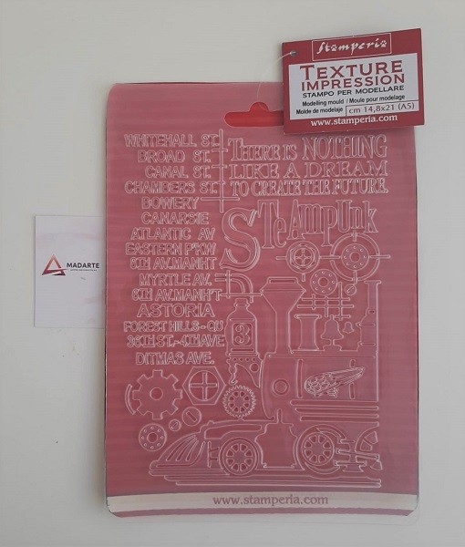 STAMPERIA| PLACA DE TEXTURA – (MOLDE DE MODELAGEM) STEAMPUNK COMBOIO14,8X21CM