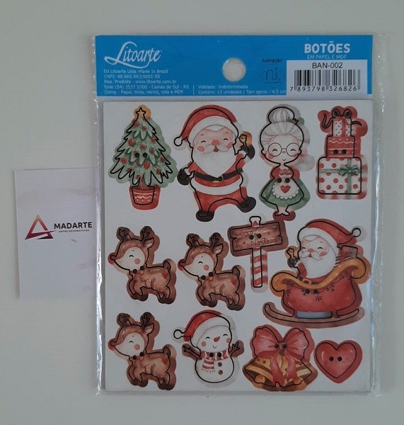 LITOARTE| BOTÕES EM PAPEL E MDF PAI NATAL 2.5-4.5CM