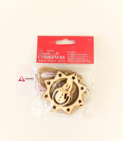 MADEIRA | ADORNO C/ CORDÃO ESTRELA COM BONECO NEVE 8X8CM 6PÇS