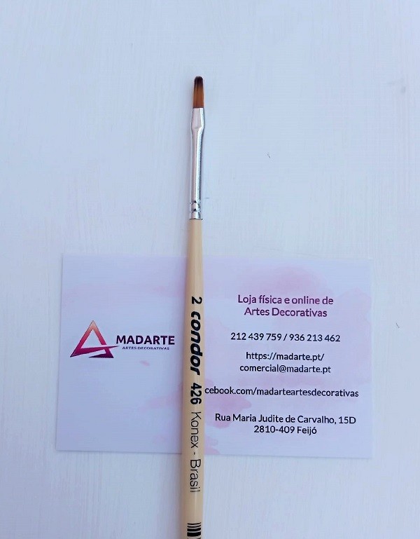 Pincel proprio para tecido, artesanato, cerâmica, aquarela e acrílica. Pelo sintético com cabo curto de madeira. Formato lingua de gato.
