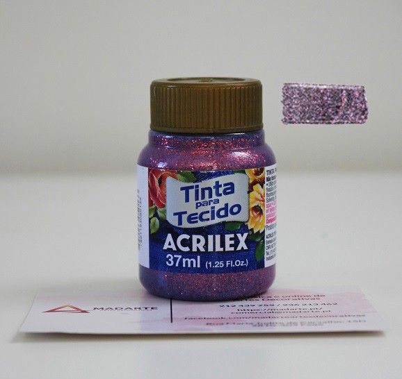 inta para tecido Acrilex não tóxica. Muito resistente a lavagens. Pode ser aplicada com pincel, esponja ou carimbo, em tecidos de algodão sem goma, não sintéticos. Lavar o tecido antes da pintura, para retirar os resíduos de goma. Após a pintura, aguarde 72 horas para lavagem.