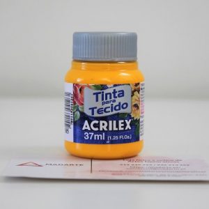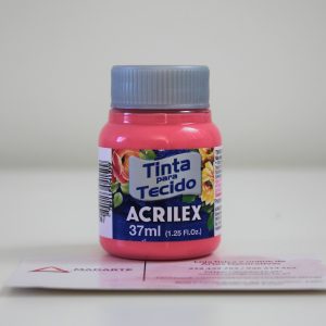 Tinta para tecido Acrilex não tóxica. Muito resistente a lavagens. Pode ser aplicada com pincel, esponja ou carimbo, em tecidos de algodão sem goma, não sintéticos. Lavar o tecido antes da pintura, para retirar os resíduos de goma. Após a pintura, aguarde 72 horas para lavagem.
